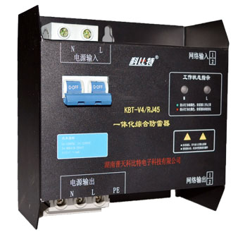 7、KBT-V4/RJ45一體化綜合防雷器集電源、網(wǎng)絡(luò)信號防雷于一體,電源采用串聯(lián)式保護方式,配有2路網(wǎng)絡(luò)(或音頻)線路保護端口,通用性強,可同時保護多臺設(shè)備。該產(chǎn)品不帶防水設(shè)計,戶外安裝時宜裝于防水箱內(nèi)。